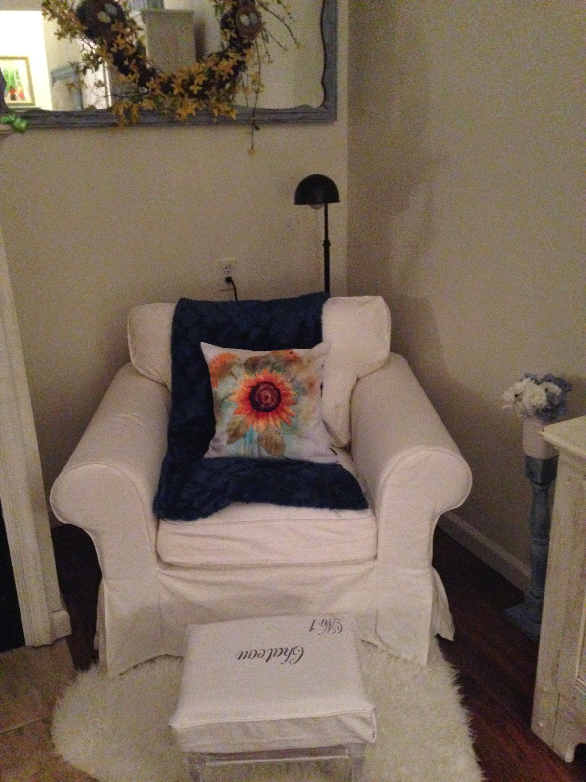 All you home decorators know when you have a vision in mind you can not sleep until you have it finished! I have been wanting a reading area in my living room since we moved here & the rocking chair that I was using just wasn’t comfortable enough.
