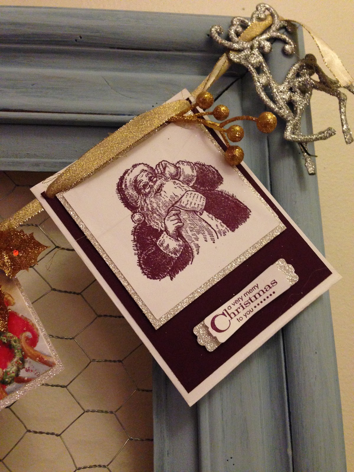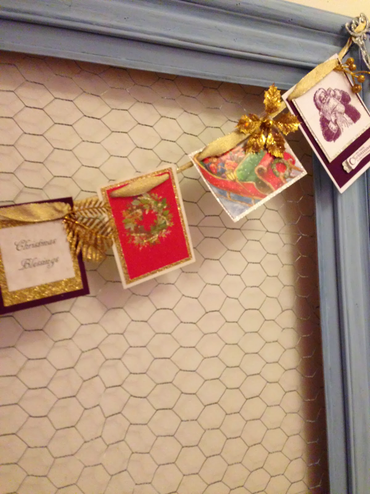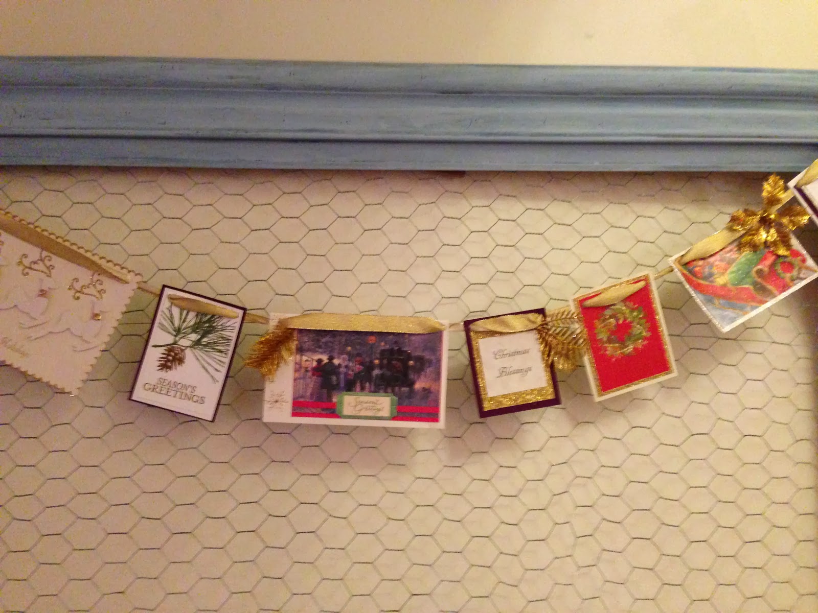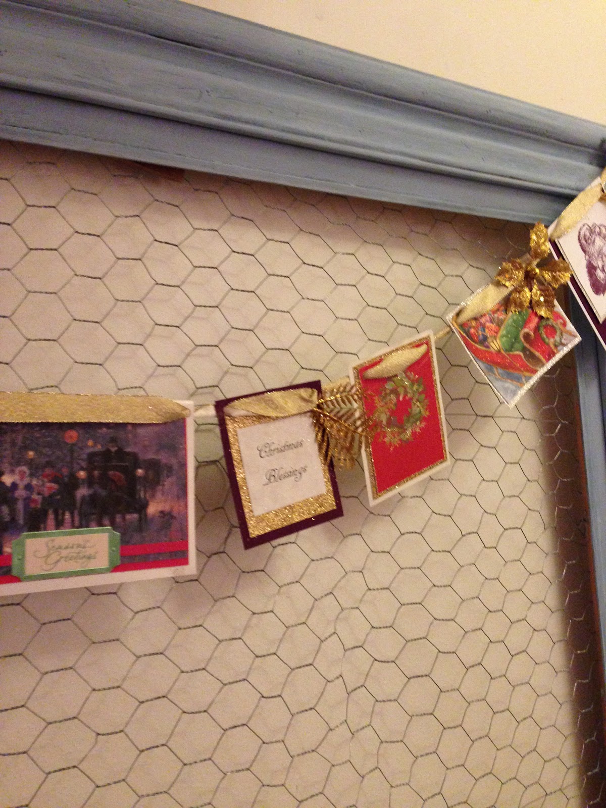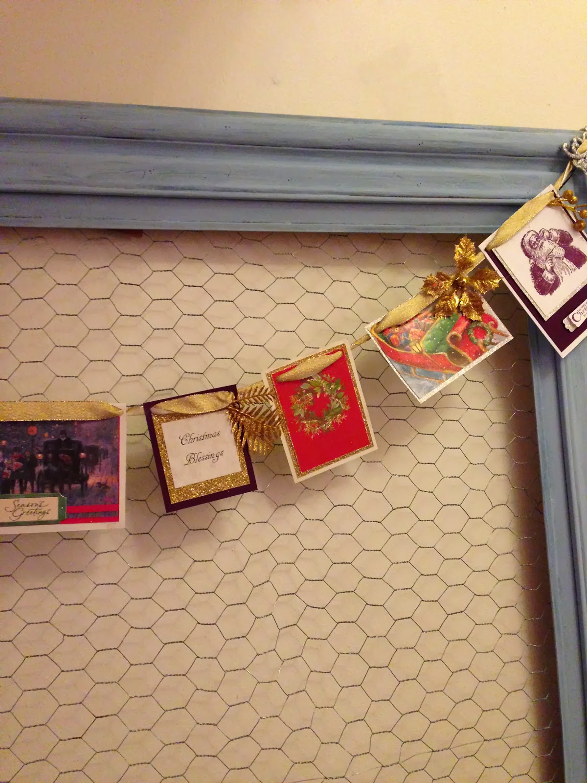 I simply cut the cards down, added some embellishments & hung them on a beautiful ribbon.
