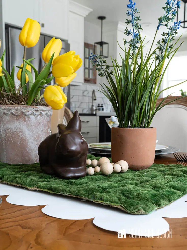 Say hello to springtime by making a sweet Easter tablescape that won’t break the bank. Love the chocolate bunny!