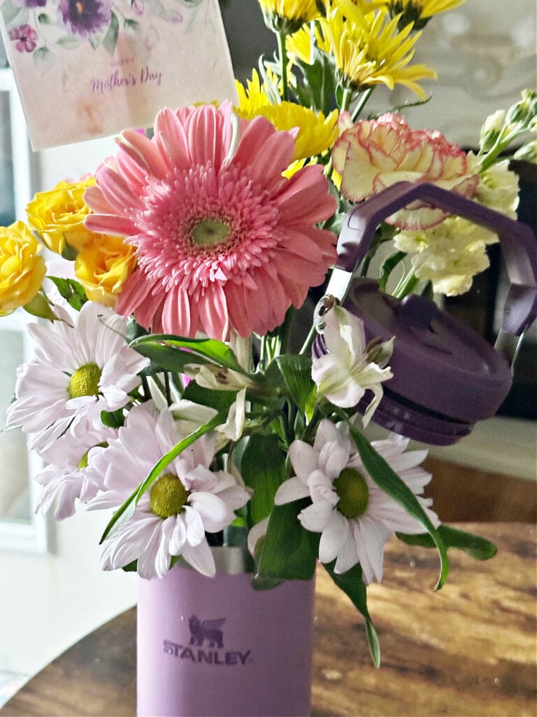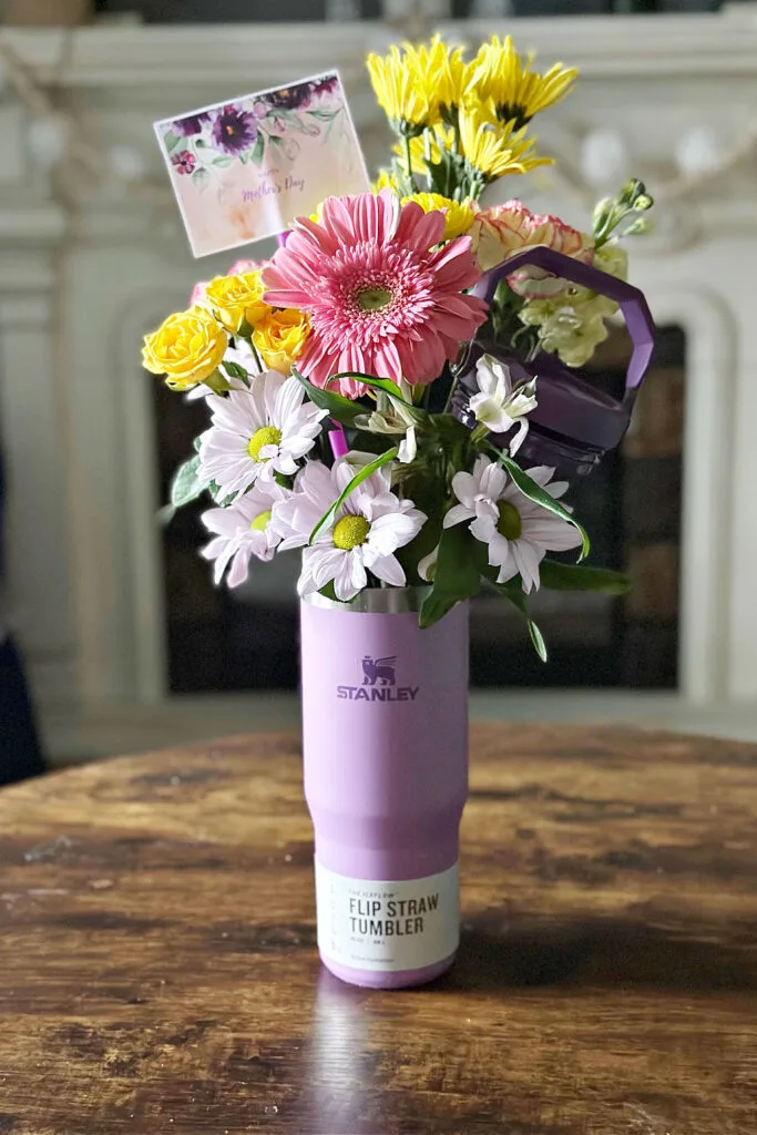 Looking for a fun, fresh gift idea that’s both trendy and heartfelt? Skip the vase and fill a Stanley Cup with beautiful grocery store flowers for a gift that’s as thoughtful as it is Insta-worthy.