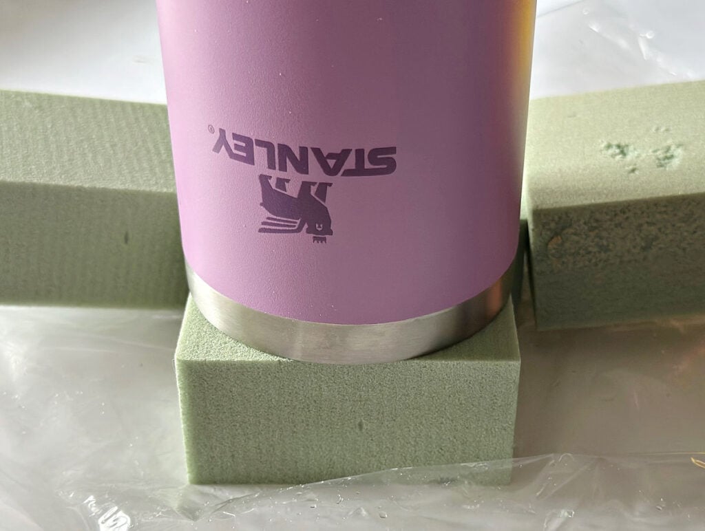 Cut Foam: Start by cutting the foam to fit the cup. The best way to do that is to turn the cup upside down on the foam, pressing it firmly and removing the excess.