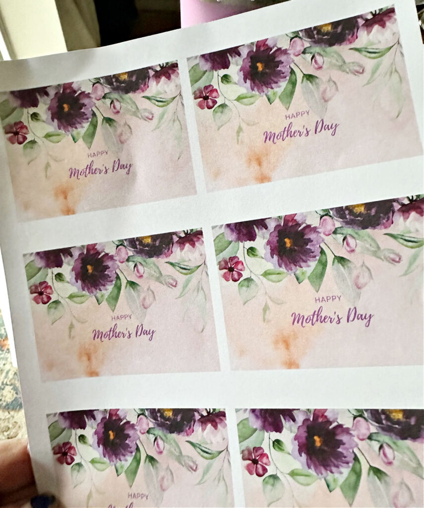 The Mother’s Day printables I created last year are the perfect purple color scheme for this gift.