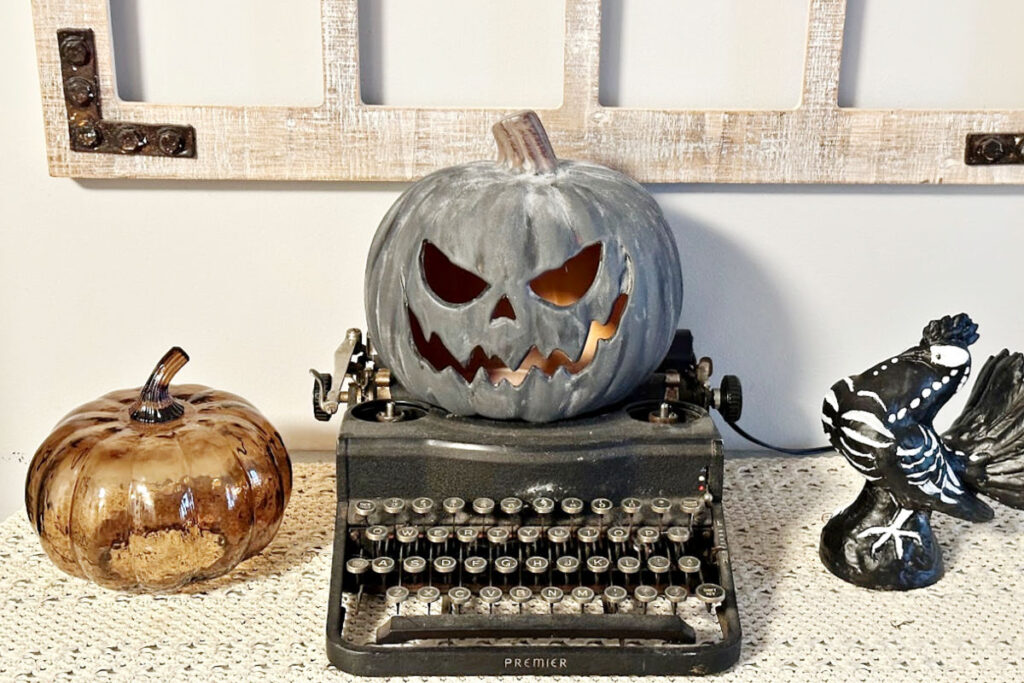 Now you are ready to display your DIY Jack O’ Lantern pumpkin anywhere you want a spooky touch of Halloween decor.