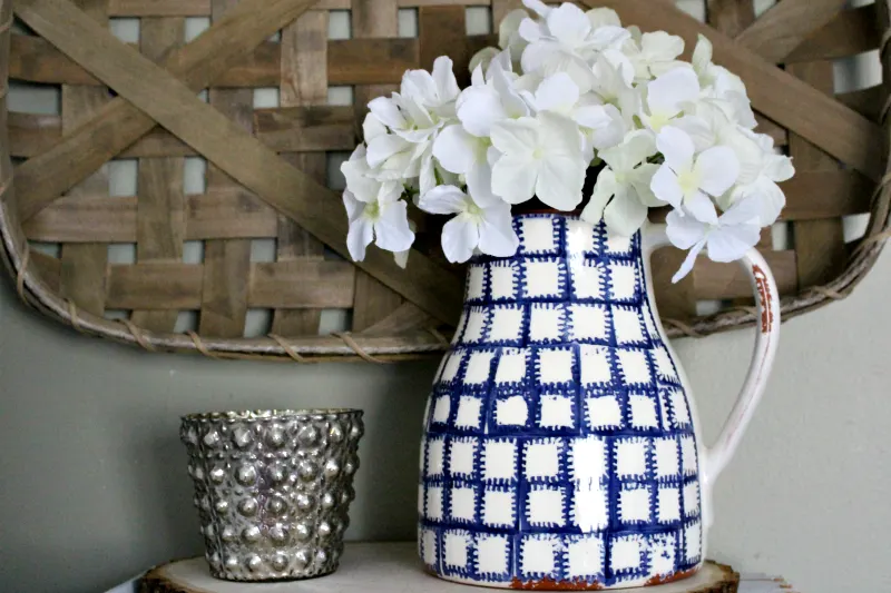 Can I tell you how obsessed I am with this IKAT Pitcher? One of the many reasons why I love shopping at this boutique is because, while the items are on trend, they are not something you see at all the big box stores. I collect ironstone pitchers and this one has quickly become my new favorite! Look at the gorgeous detail and color: