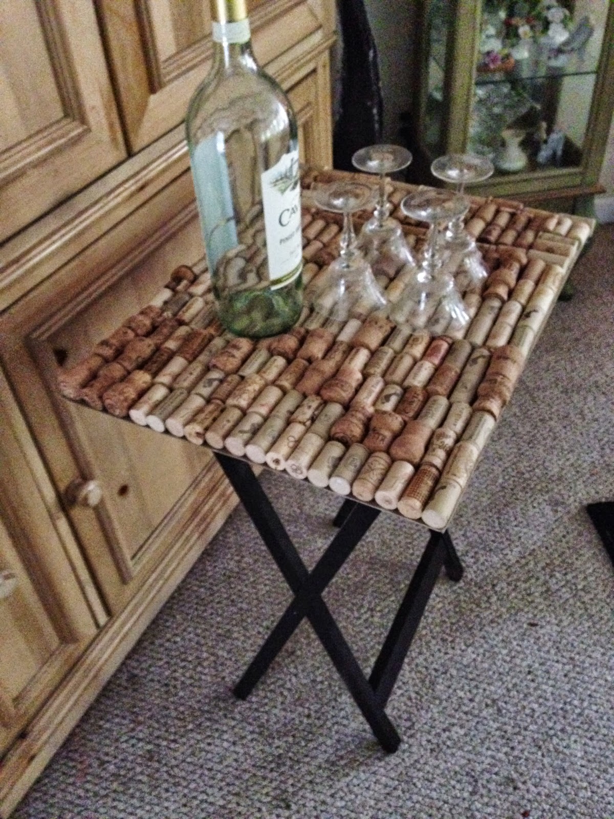This table was a labor of love! It took forever to save enough corks to make it. I had my sisters, co-workers, even my boss saving corks for me!